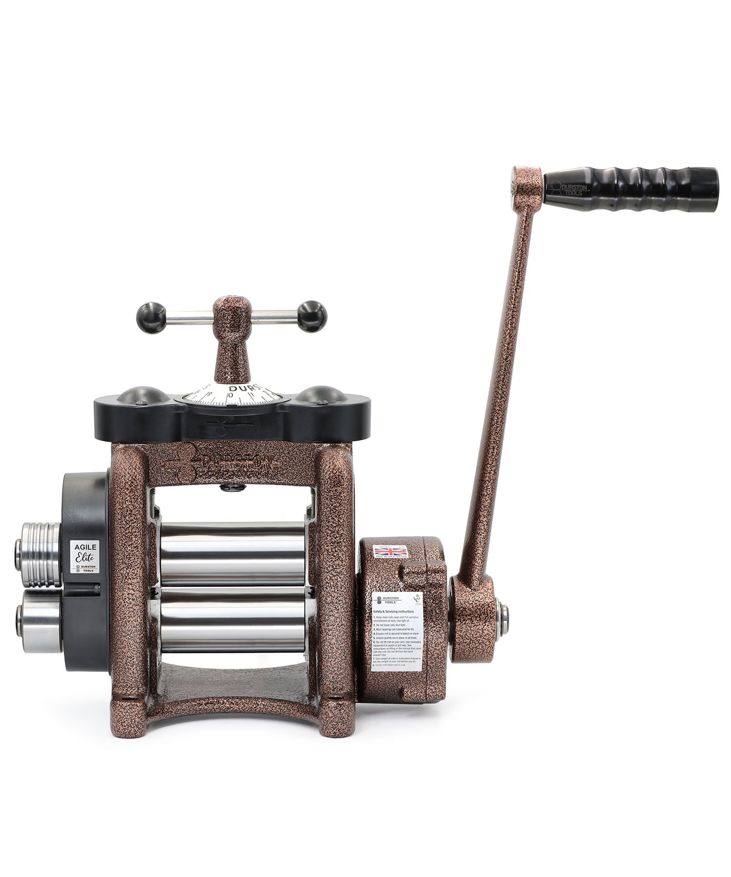 The Durston 1018 Agile Elite F110mm Flat Rolling Mill is a premium tool for professional jewelers and metalworkers. This patent-pending milling solution features a robust reduction gear and F110mm rolls to deliver precise, repeatable results across a wide range of metals.