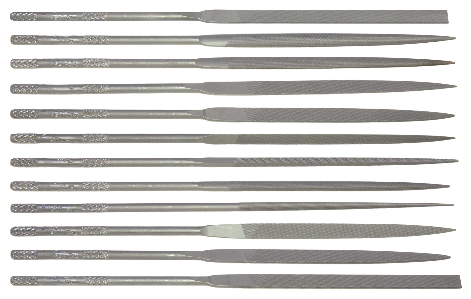 The Glardon Vallorbe Swiss Needle File Set is a 12-piece collection of precision tools designed for metalworking, jewelry making, and intricate model work. This 5-1/2" needle file set features a medium cut (#2) for clean, controlled material removal and sharp, durable edges.