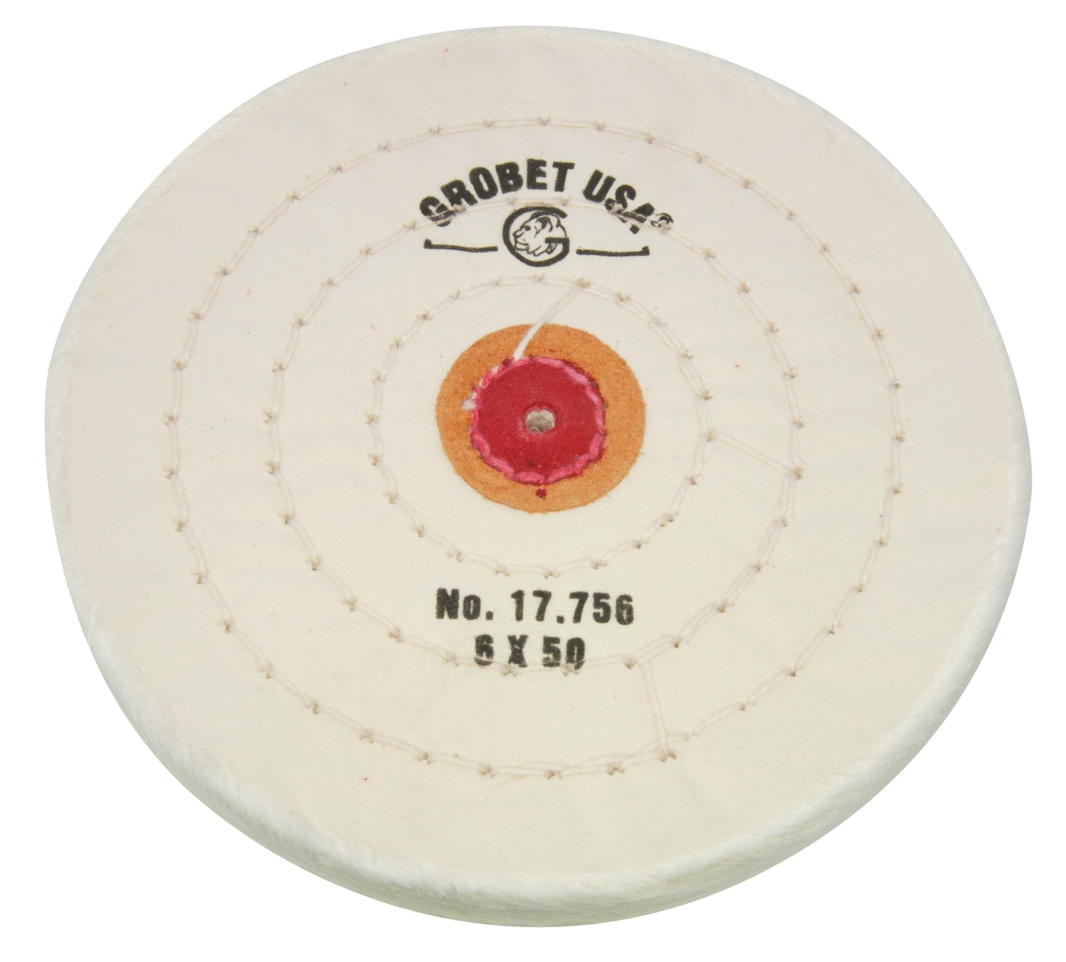 Finex Muslin Buff 6" x 50 Ply Stitched with Leather Center