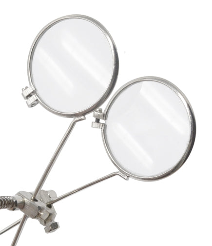 The Double Glass Clip-On Loupe 5.5X is a versatile magnifier designed for precise inspection of small details. This clip-on eye loupe attaches to the side of your glasses and keeps your hands free for delicate work, while two flip-up lenses let you switch magnification in an instant.
