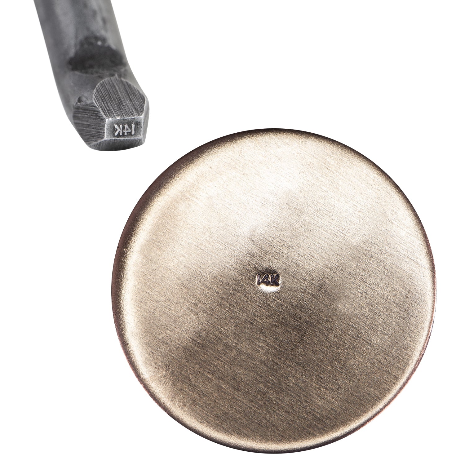 14K 1 MM straight stamp tool with heat-treated steel head making clear 14K marks on metal surface