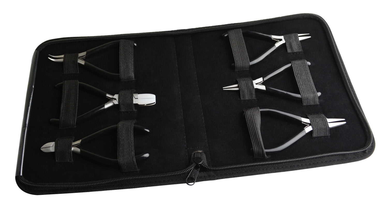 - Six-piece assortment of pliers and cutters for jewelry making