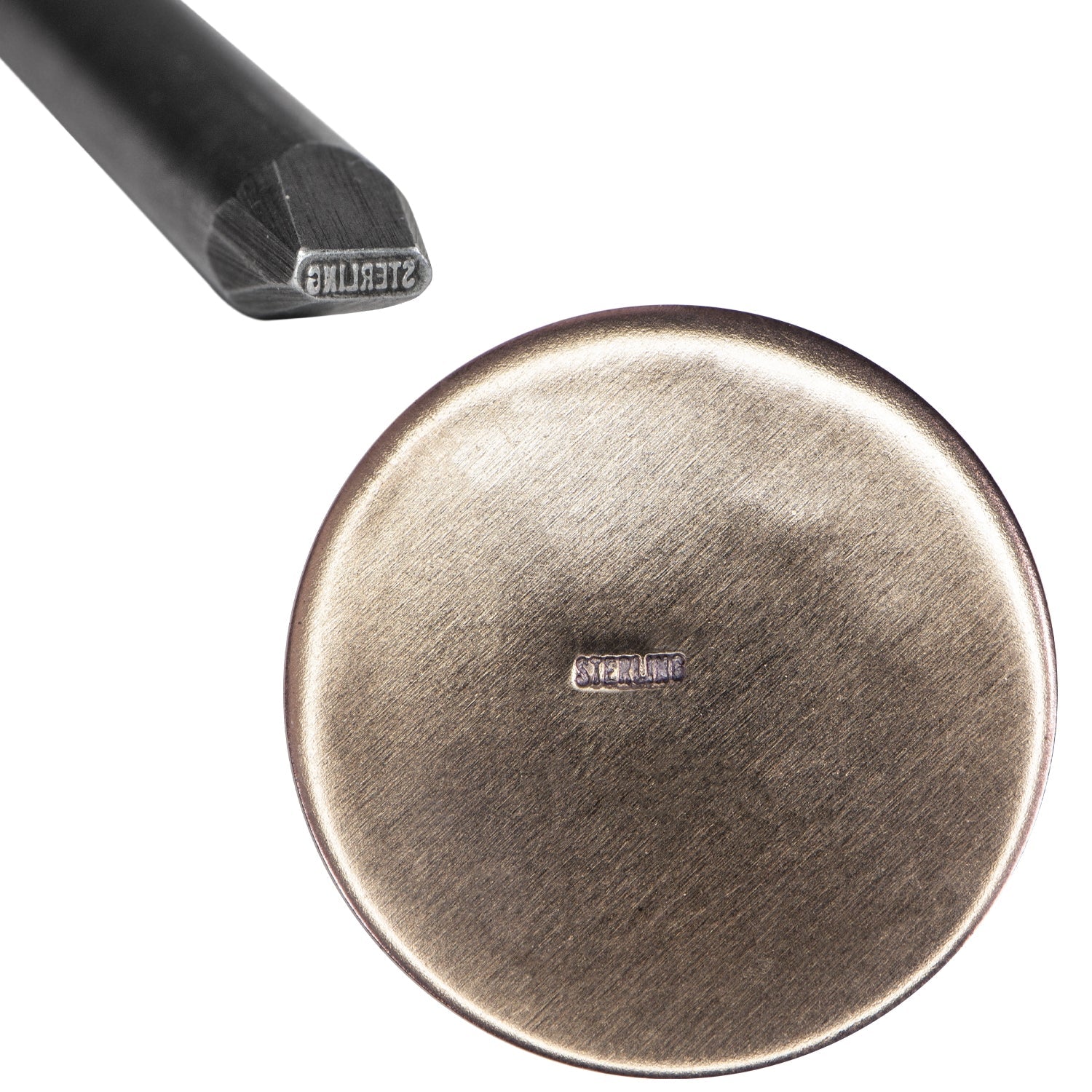 The STERLING 3/4 MM Straight Stamp delivers precise, repeatable marks for jewelry and metalwork. Crafted from 1/4-inch round, heat-treated tool steel, this stamp offers exceptional durability and clean, legible impressions project after project. It features a bold "STERLING" character design for marking your materials with confidence.