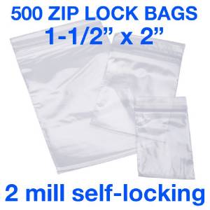 500 PIECE 1-1/2" X 2" 2MIL ZIP LOCK POLY RECLOSABLE PLASTIC BAGS CLEAR BAGGIES