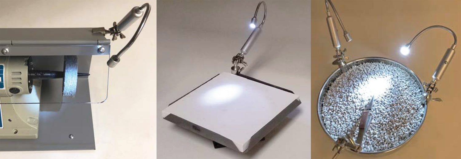 - Flexible arm with articulating joints for precise lighting angles