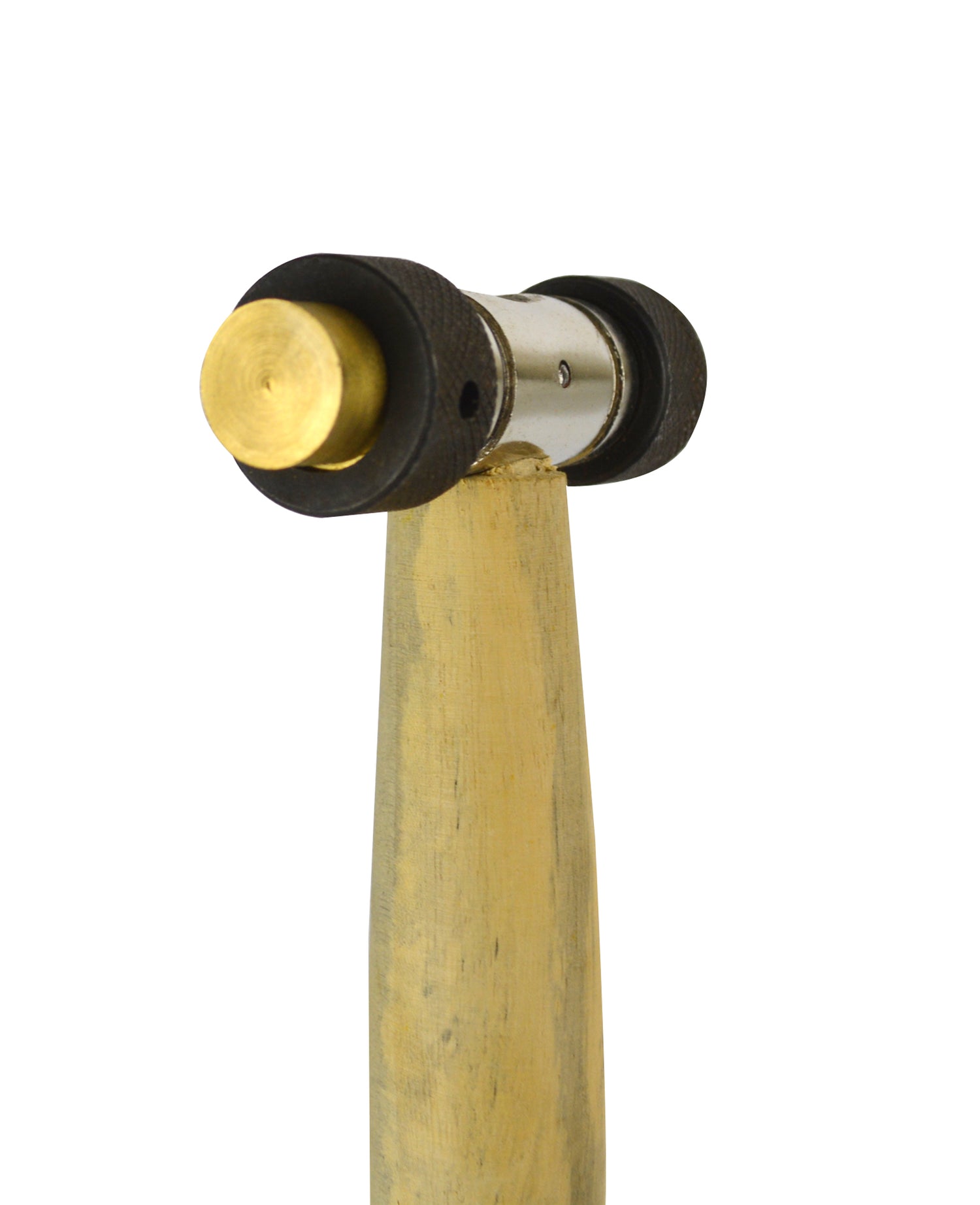 Meet the 9-1/2" Hammer with Replaceable Brass and Nylon Fiber Head, a versatile hand tool designed for jewelry making, metal forming, and delicate finishing. It includes two interchangeable round and smooth faces: one brass and one nylon fiber, securely mounted onto a hardwood handle for reliable tapping across long sessions.