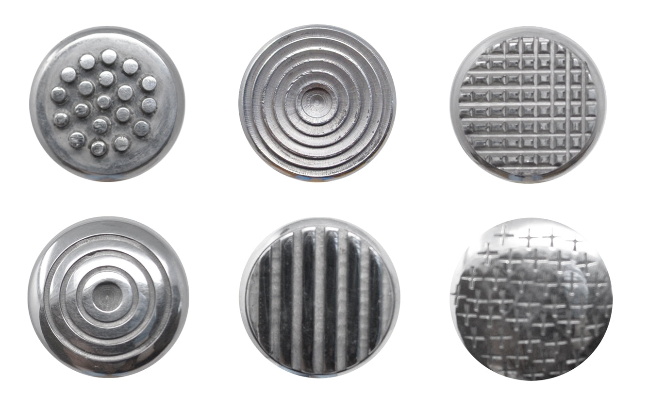 This Set of 3 Texturing Hammer Set includes three double-sided hammers designed to create a variety of patterns and textures on metal. The heavy-duty hammers deliver the pattern with every strike, ensuring consistent results across projects. The head is made of polished steel for durability and crisp impressions, while secure, balanced handles reduce fatigue during long sessions.