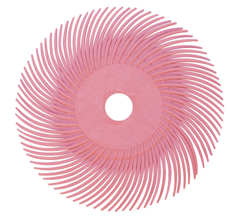 The Pink Pumice 3M Micron Radial Disc - 3" delivers powerful cleaning and finishing in a single pass. Embedded with a long-lasting abrasive material, this radial bristle disc eliminates the need for messy compounds while delivering a smooth, uniform finish.