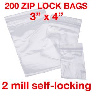 200 Piece 3" x 4" 2MIL Zip Lock Plastic Bags Clear Baggies