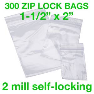 300 PIECE 1-1/2" X 2" 2MIL ZIP LOCK POLY RECLOSABLE PLASTIC BAGS CLEAR BAGGIES