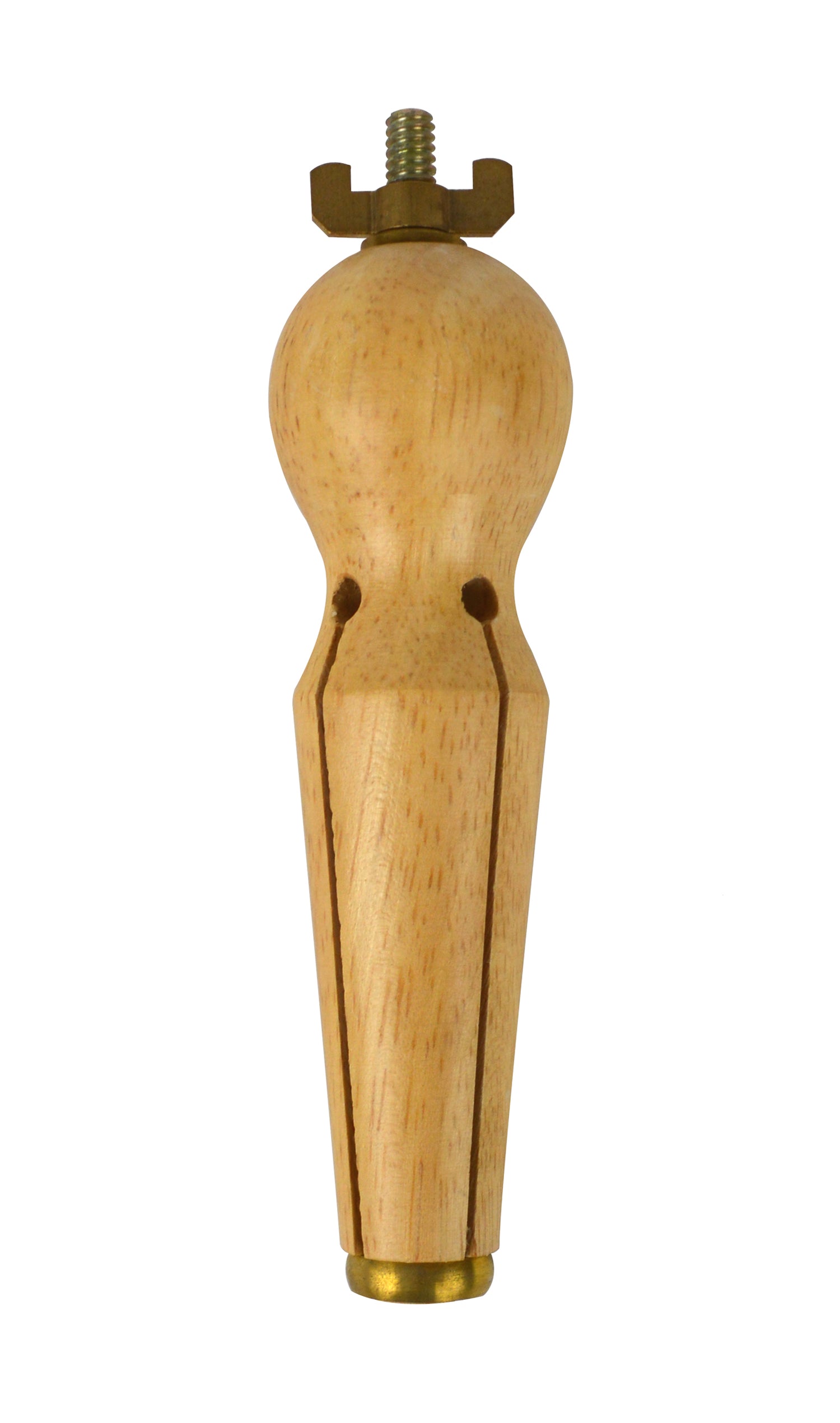 The 5-1/4" Wooden Ring Four Spline Clamp with Fly Nut is designed to securely hold rings internally, allowing you to work on the exterior surfaces with precision. This compact clamp provides steady, even pressure to minimize chatter and misalignment during size checks, polishing, or assembly. Simply unwind the fly nut in an anti-clockwise motion to loosen the metal taper at the center, then adjust the grip for your task. Its compact profile fits crowded benches and travel kits, making it ideal for workshops of any size.
