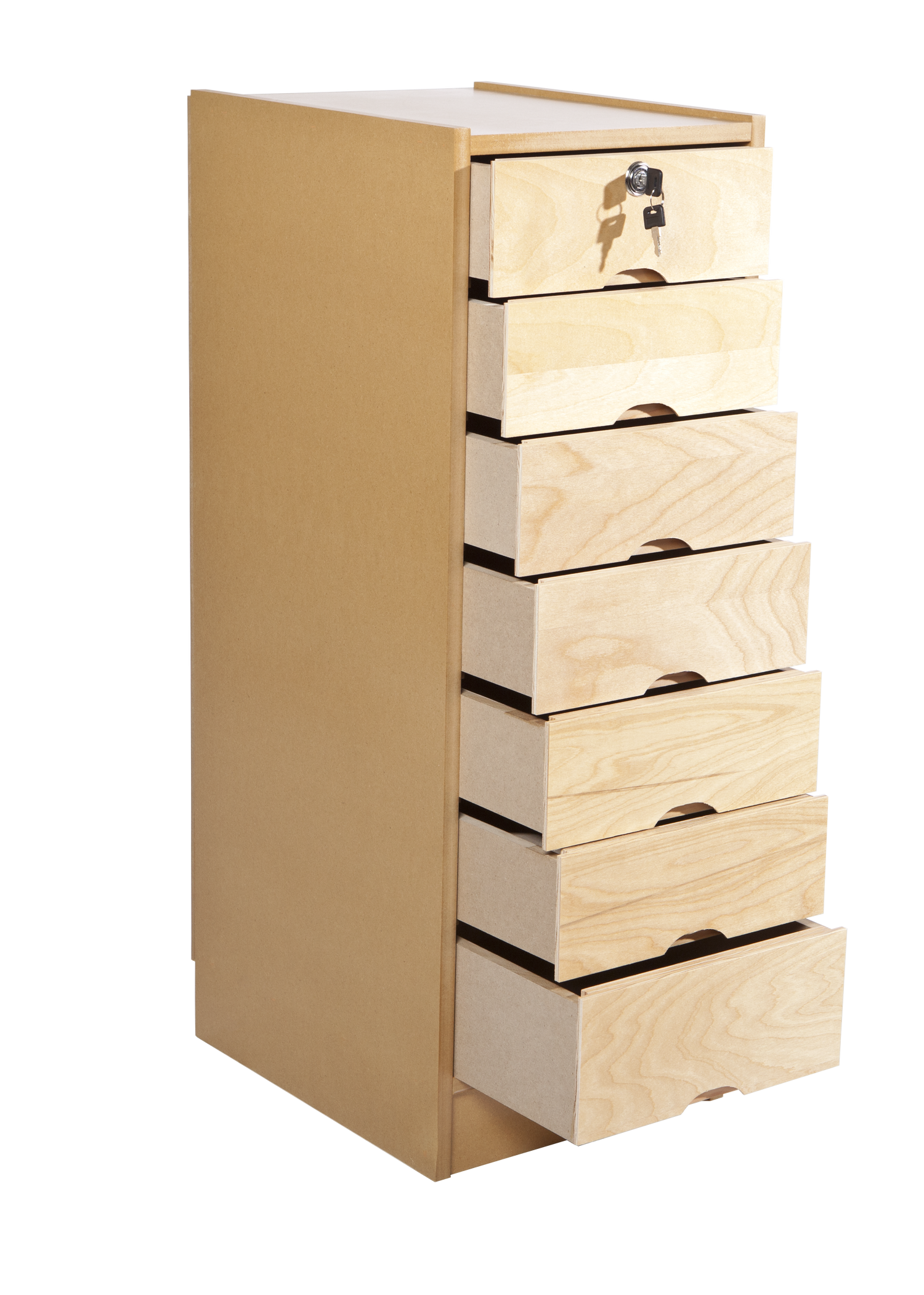 - Seven spacious drawers with a lockable top drawer for secure storage