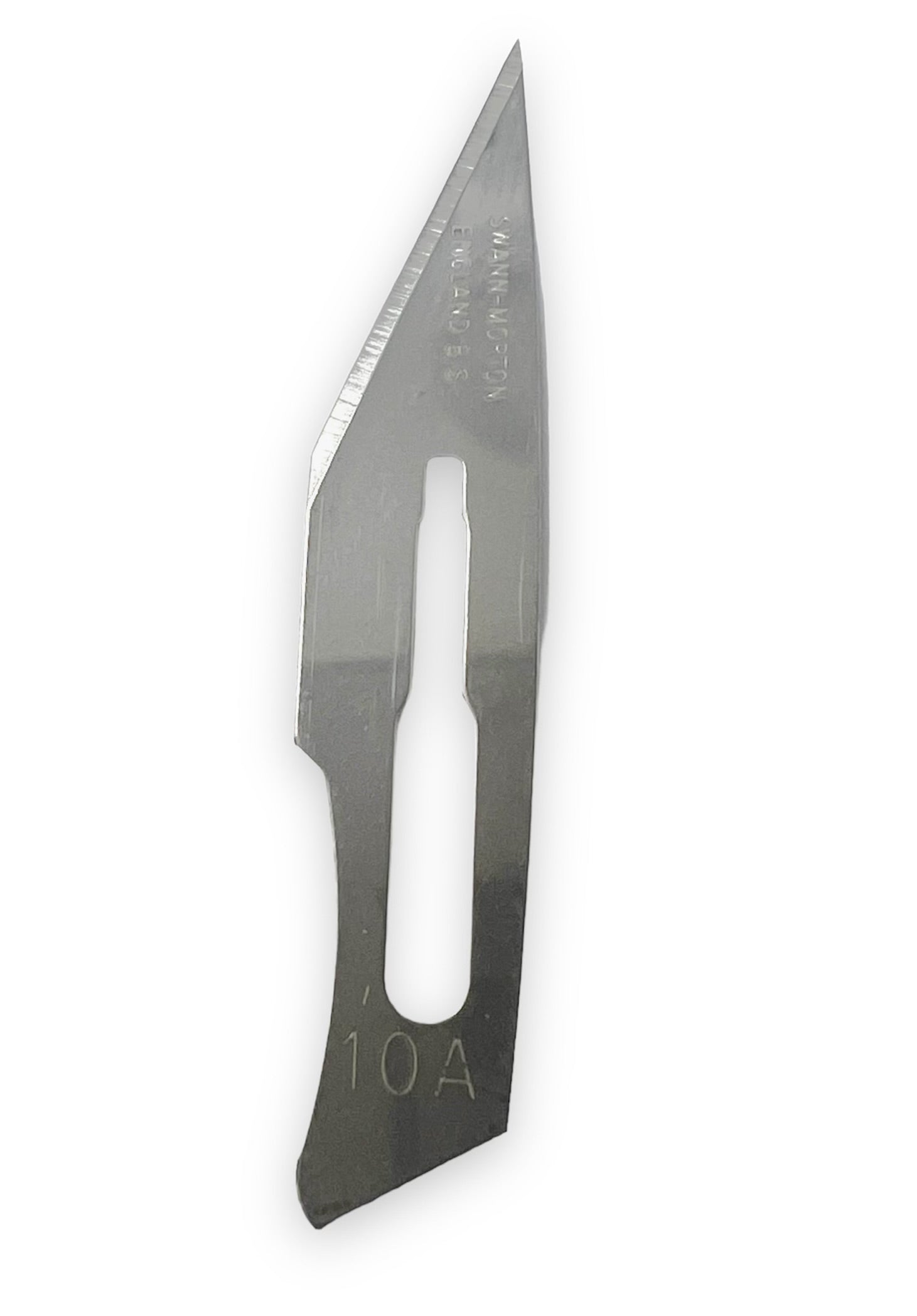 Non-sterile scalpel blades crafted in England, these blades feature a triangular blade sharpened along the hypotenuse edge with a strong pointed tip, enabling clean, controlled incisions on molds. The carbon steel formulation provides dependable rigidity and edge retention for repeated use, while maintaining a tactile feel for steady handling.