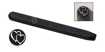 The 3/16" 5 MM Double Overlapping Heart Stamp Metal Marking Jewelry Charms Stamping is a precision tool designed for crafting smooth, consistent impressions on metal charms. Constructed from black-coated carbon hardened steel, this stamp delivers durable performance for long-term use. The laser-engraved heart design measures approximately 5 mm and is clearly marked on the square shaft for easy alignment. Ergonomically designed with a knurled grip, it offers comfortable handling during repeated stamping sessions.