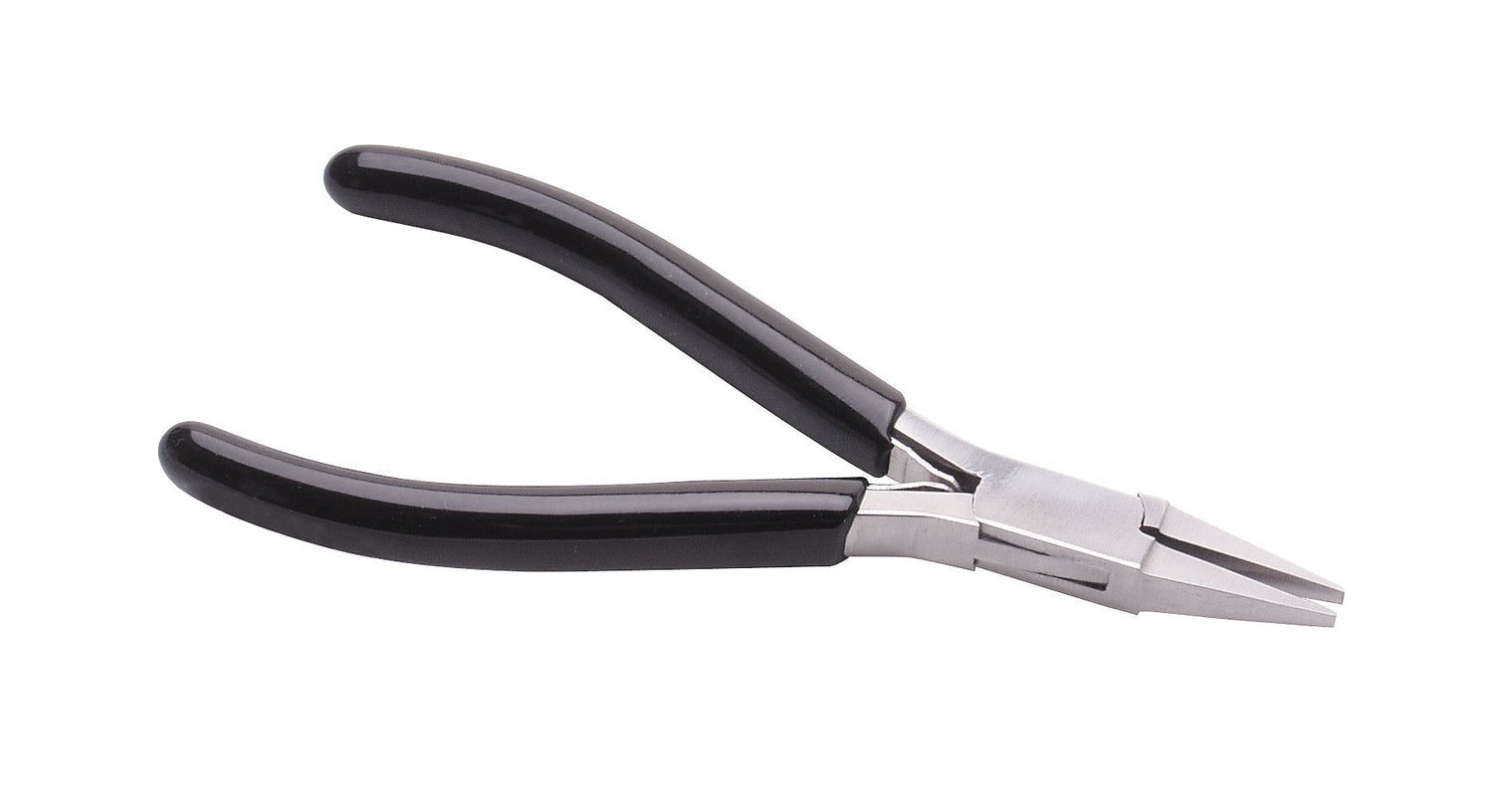 The 4-1/2" Narrow Jaw Flat Nose Pliers are precision tools designed for tight spaces and delicate wire work. This model features an extra-narrow 2.2 mm nose tip for clean, accurate bends, especially when forming 90-degree angles. Built for comfort, the PVC grips reduce fatigue during long sessions, while the dual-leaf springs ensure smooth, responsive action.